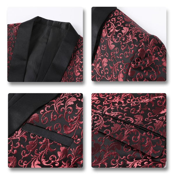 Mens Floral Embroidered 1 Button Tuxedo Jacket