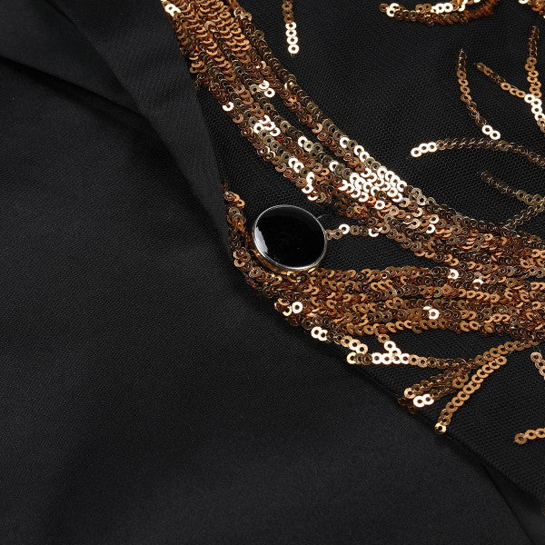 This fashion shimmer suit tops with classic notched lapel, 1 exquisite button fastening, features unique sequins pattern design, 3D tailored fit cut, full shoulder design and durable seams for an overall nice, expressing a sharp and elegant looking.