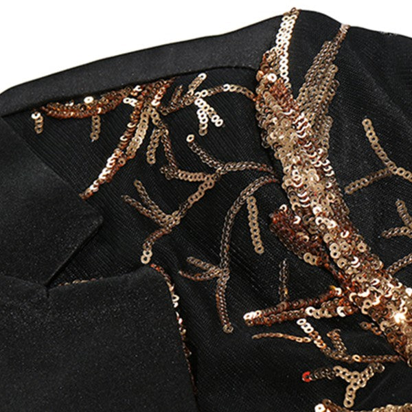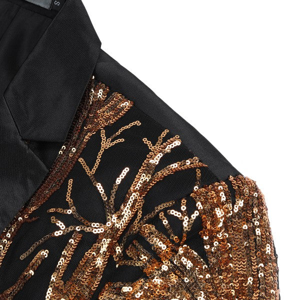Mens Tree Sequin Patchwork 1 Button Tuxedo Jacket