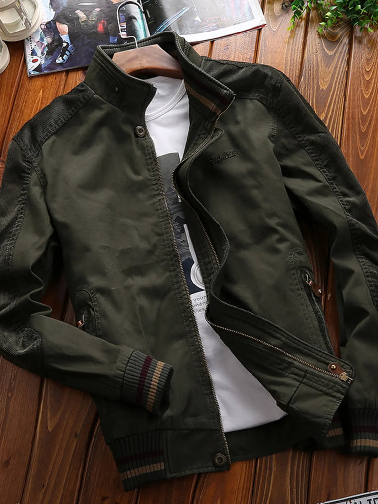 Men's Full Size Bomber Jacket with Ribbed Cuffs and Collar Plus Size