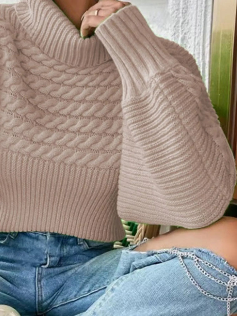 Textured Knit Turtleneck Long Sleeve Sweater